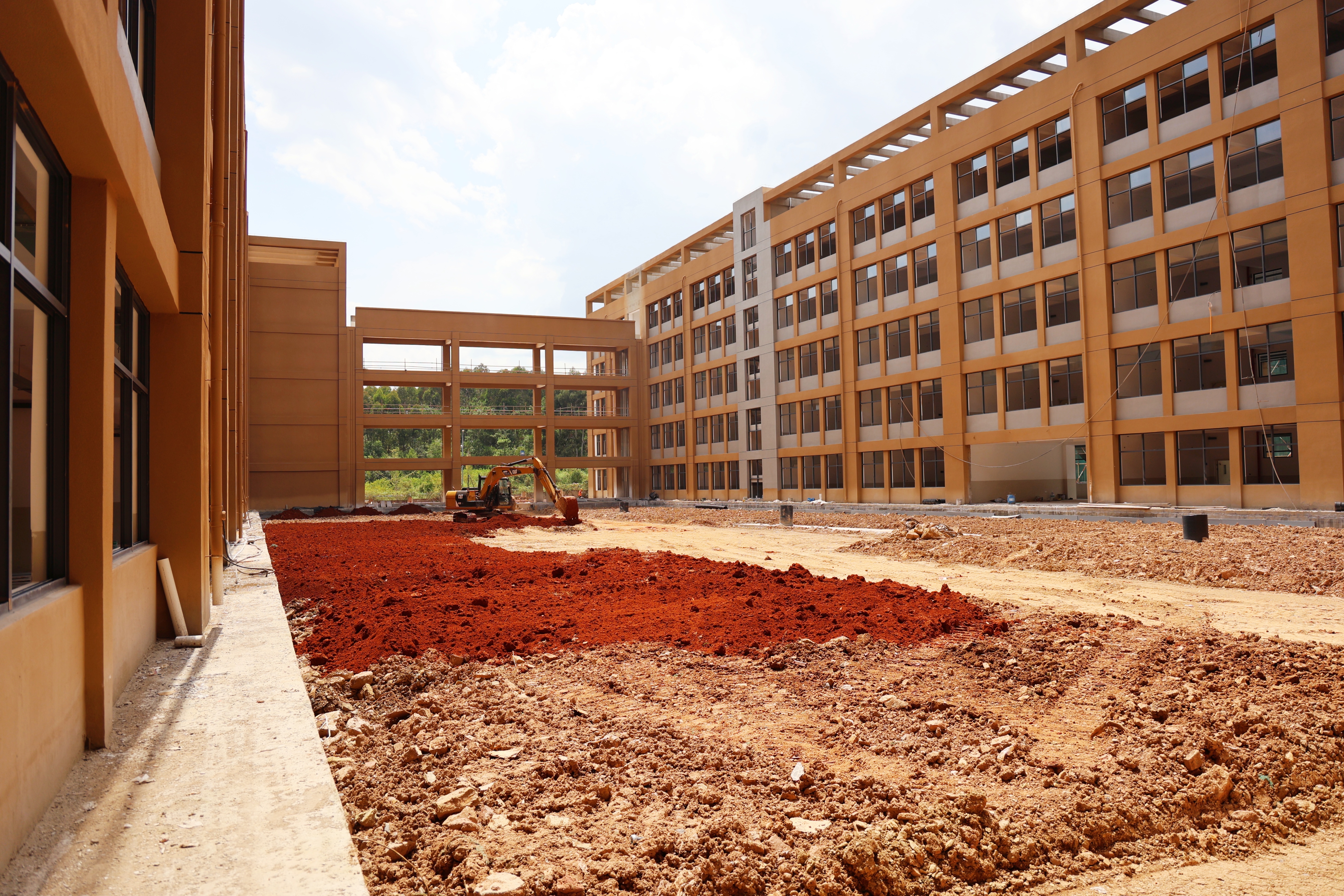 2025年8月,项目冲刺收尾:教学楼装饰收官,宿舍楼与绿化工程告捷,风雨操场钢结构巍然矗立,地下室装修进入倒计时。暖黄外墙下,一座功能齐备、环境优美的“一站式”教育园区跃然眼前。它不仅是3栋智慧教学楼、高标准宿舍、多功能报告厅与风雨操场的物理集成,更是“五育并举”育人理念的空间载体。
