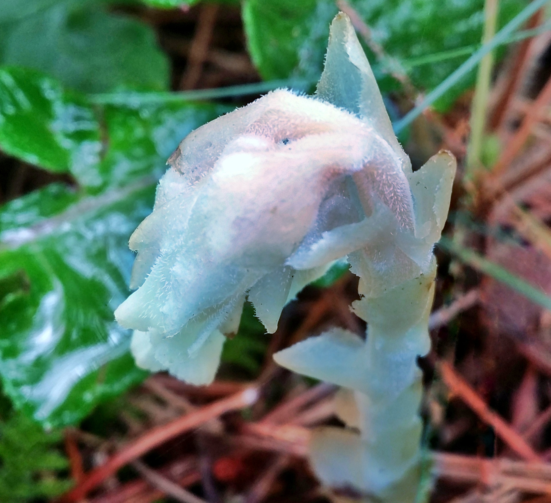 五六年前,在云南省曲靖市麒麟区一次偶然的山林徒步,曾经见到一丛奇异的植物,不知道名字,好奇地观察了一下,忘记了拍照留存。五六年后,看过多地发现近危物种“幽冥之花”水晶兰的报道,才知道,当年看到的那丛植物就是列入《中国生物多样性红色名录—高等植物卷》(2013年)的近危(NT)物种“幽冥之花”水晶兰。之后数年,多个朋友在麒麟区东山镇、茨营镇、潇湘街道均见到拍到过此种植物。炎炎夏日,在清凉之地的一个林场,终于再次见到近危物种“幽冥之花”水晶兰。