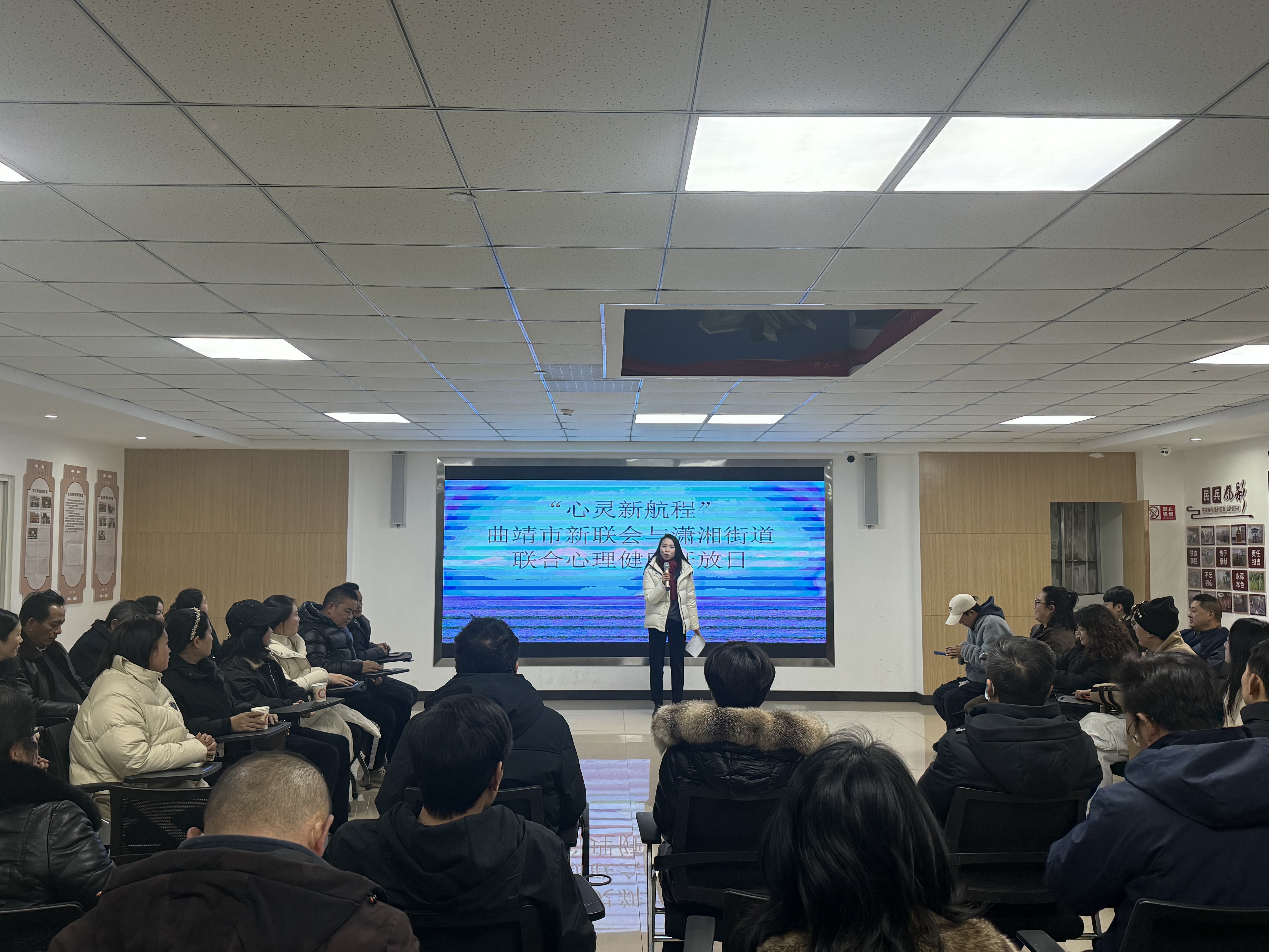 1月7日,潇湘街道与曲靖市新的社会阶层人士联谊会联合主办的“心灵新航程”心理健康主题活动在潇湘街道党群服务中心温暖启幕。街道干部职工与市新联会会员代表齐聚一堂,在专业心理咨询团队的带领下,开启了一场关于压力管理、情绪赋能与关系建设的沉浸式体验之旅。